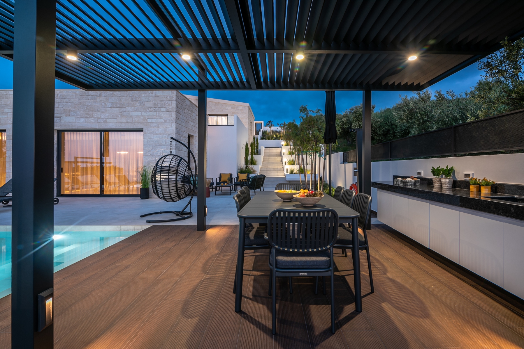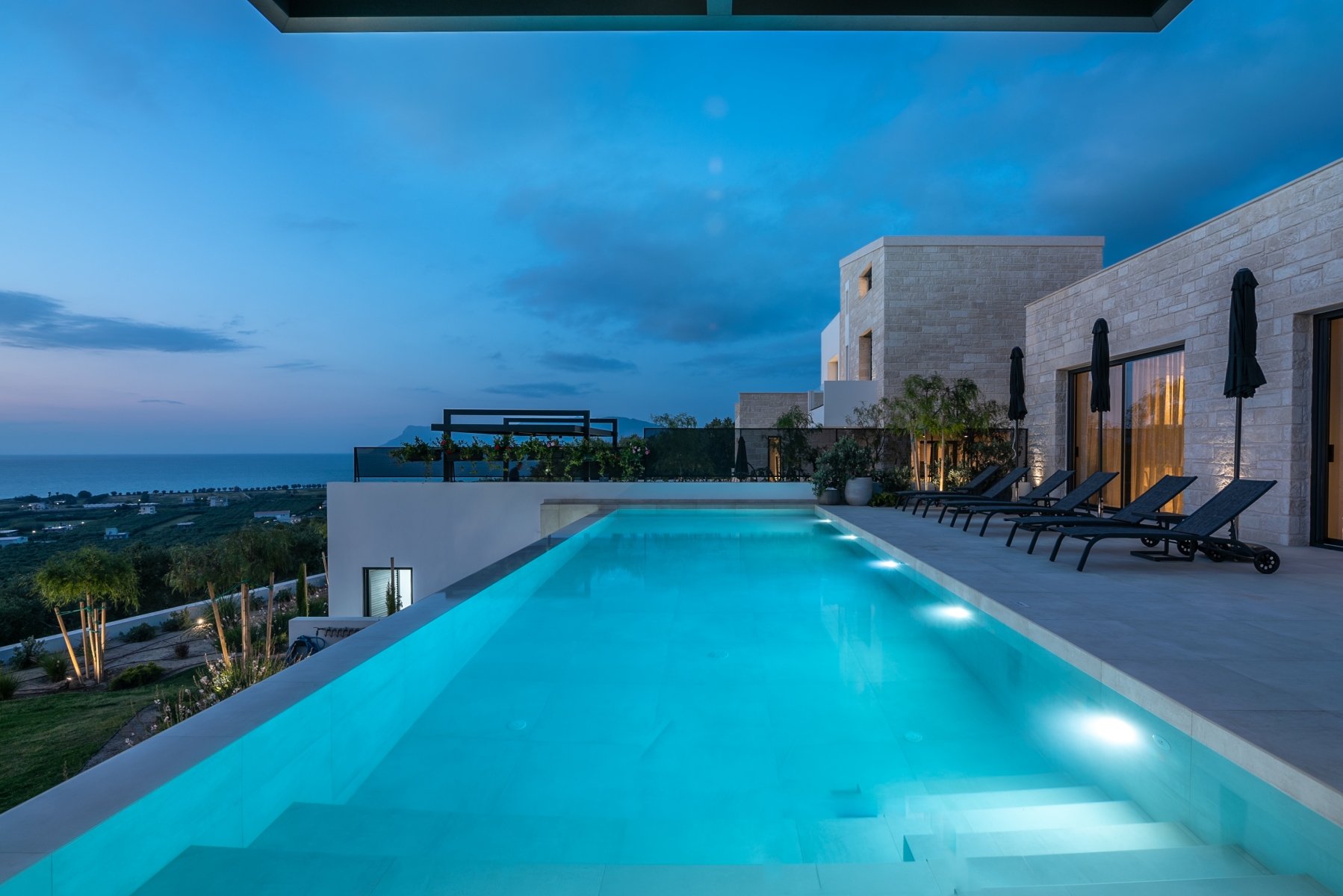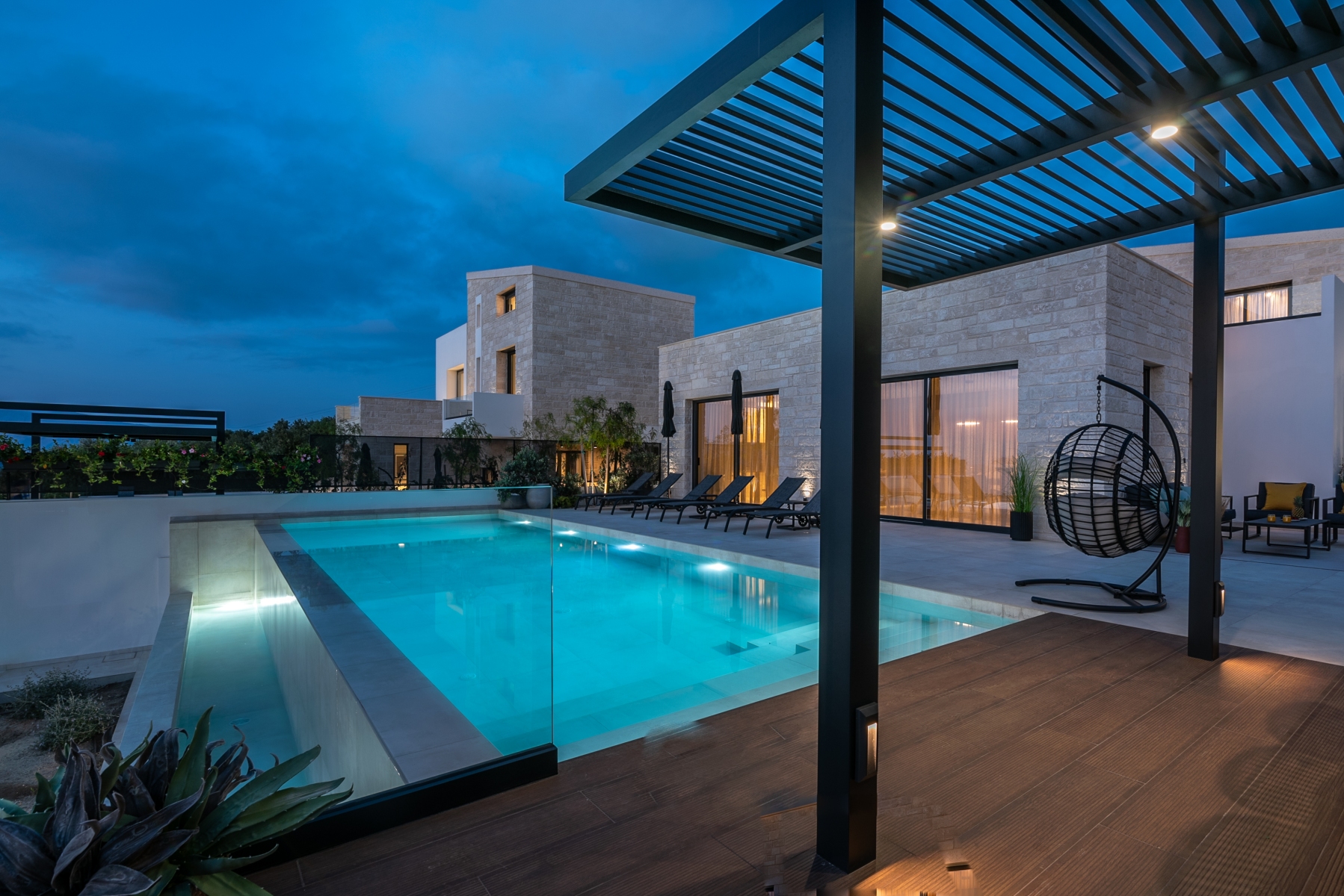 Η νυχτερινή φωτογράφιση γίνεται την λεγόμενη “μπλε ώρα” δηλαδή μετά την δύση του ηλίου και λίγη ώρα πριν νυχτώσει. Είναι η ώρα που ο ουρανός έχει ένα βαθύ μπλε χρώμα και συγχρόνως γράφουν και τα φώτα του εξωτερικού σας χώρου (φώτα πισίνας ,κτιρίου, περιβάλλοντα χώρου, αρχιτεκτονικός φωτισμός κλπ) ώστε να δημιουργηθεί μια μοναδική ατμόσφαιρα που εμείς θα την καταγράψουμε με τον καλύτερο δυνατό τρόπο και θα σας αποδώσουμε μια πολύ δυνατή εικόνα του χώρου σας που θα προσελκύσει και τον πιο απαιτητικό επισκέπτη.