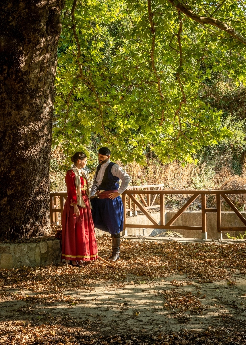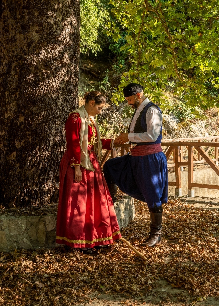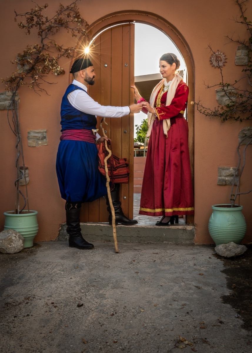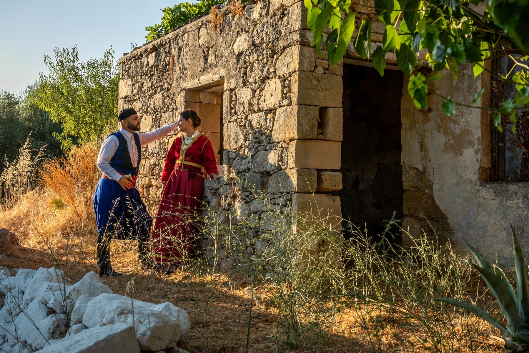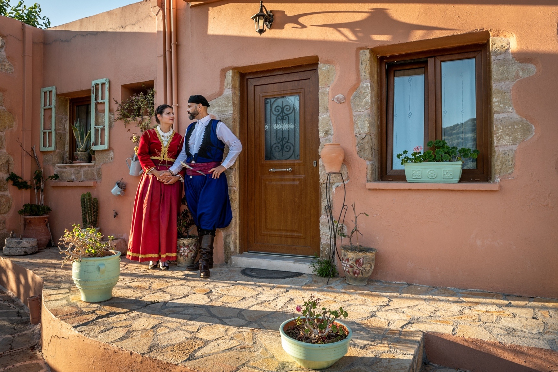 Φωτογράφιση ζευγαριού με παραδοσιακές φορεσιές της Κρήτης..